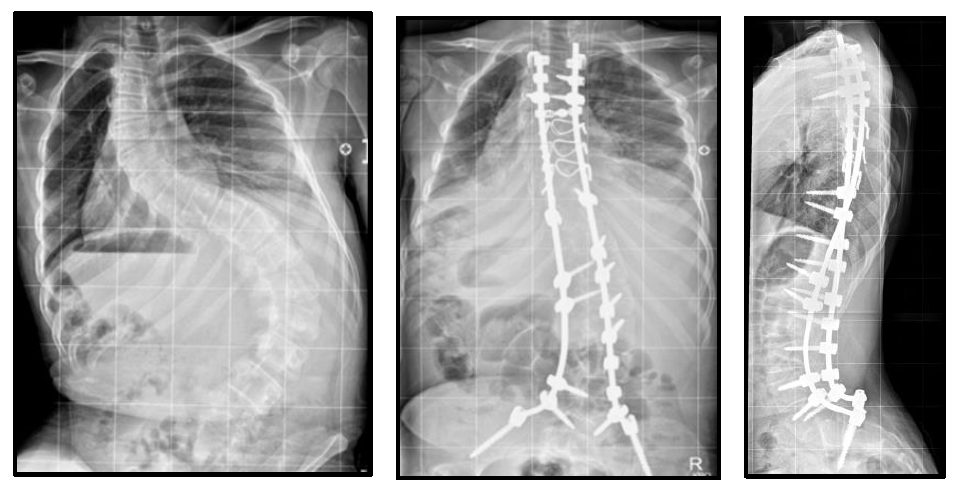 This surgery is for patients who have a moderate to large scoliosis or kyphosis that continues to worsen. It usually involves both the thoracic and lumbar spine.